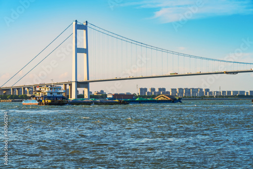 Naklejka premium The Yangtze River Bridge in Jiangyin, Jiangsu Province, China, and the...