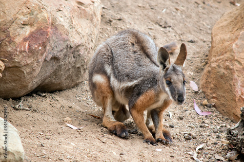 © susan flashman, Naklejka premium the Yellow footed rock wallaby is resting