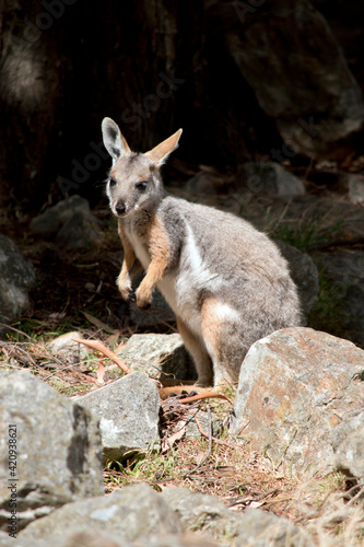 Fototapeta premium the yellow footed rock wallaby is standing on rocks