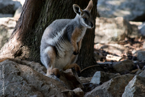 Naklejka premium the yellow footed rock wallaby is standing on rocks