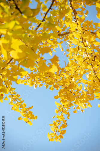 © SHINlNG, Obraz premium the yellow ginkgo leaves in autumn