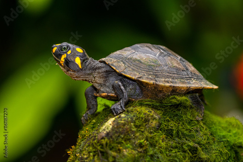 Obraz premium The yellow-spotted Amazon river turtle (Podocnemis unifilis), also known...