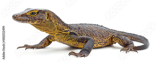 Fototapeta premium The yellow-spotted monitor, also known as the New Guinea Argus monitor, displayed on a white background