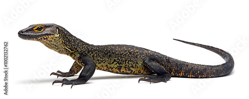 Fototapeta premium The yellow-spotted monitor, also known as the New Guinea Argus monitor, displayed on a white background
