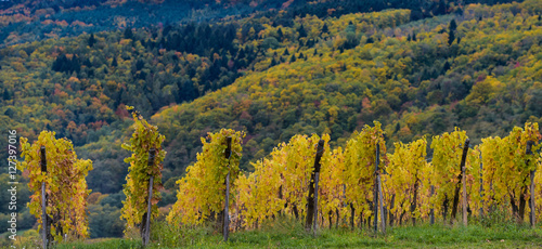 © FreeProd, Fototapeta premium The yellow vines in the fall, Alsace, France