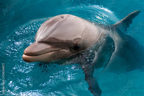 Fototapeta premium The yong Bottlenose dolphin is swimming in red sea