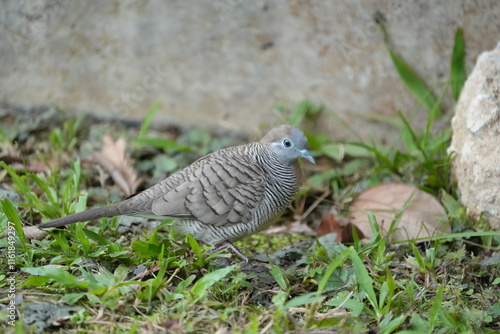 Fototapeta premium The Zebra Dove (Geopelia striata) is a small, attractive dove species known for its distinctive plumage, peaceful nature, and adaptability to urban environments.