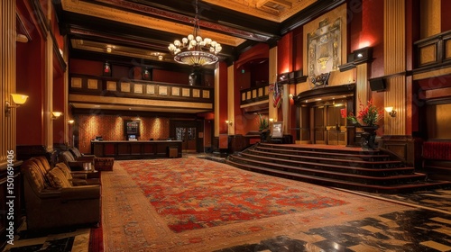 © TJAYZ, Obraz premium 66. Theater lobby with warm ambient lighting and vintage design