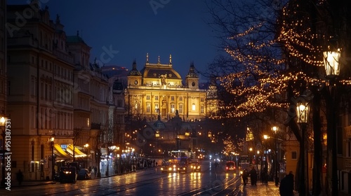 Fototapeta premium Theatre in Night Prague