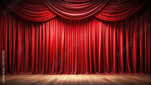 © suchetpong, Fototapeta premium Theatrical backdrop with large red curtains against empty background