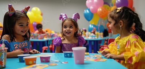 Fototapeta premium 2025 Themed Children’s Party with Costumes and Games at a Community Center