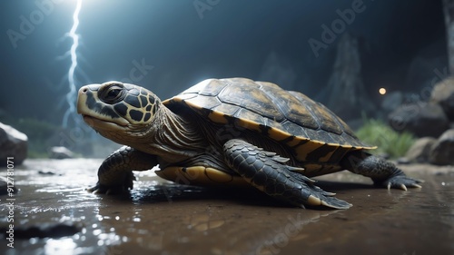 © Lzanne Studio, Obraz premium theo the thunder turtle a turtle with the power to con cinematic concept art