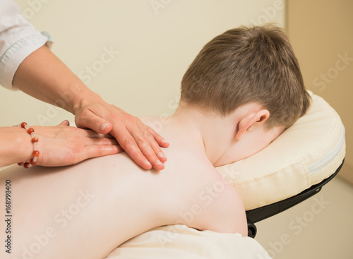 © arts, Fototapeta premium therapist making massage on boy back