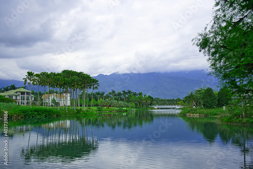 Fototapeta premium There are mountains, water, green trees, and a rural living environment. Hualien County, Taiwan is a very popular place for leisure travel.