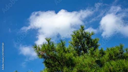 Obraz premium There are nice pine trees under the blue sky