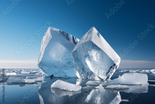 © haiqiang, Obraz premium there are three pieces of ice sitting on the water