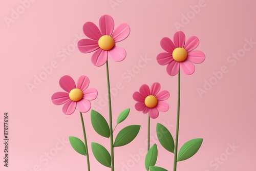 © haiqiang, Fototapeta premium there are three pink flowers with green leaves in a vase