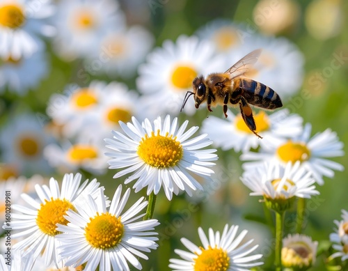 © Wijit, Obraz premium there is a bee flying over a field of white flowers