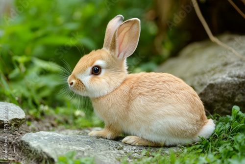 © Nadezhda, Fototapeta premium There is a brown dog that is sitting on a blue bench