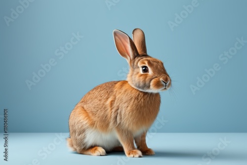 © haiqiang, Obraz premium there is a brown rabbit sitting on a blue surface