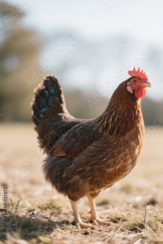 © haiqiang, Fototapeta premium there is a chicken standing in the middle of a field