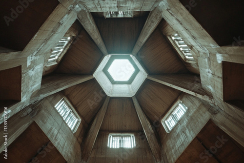 © Nadezhda, Obraz premium There is a circular building with a skylight in the middle