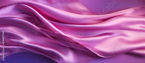 Obraz premium There is a copy space image of a crumpled pink satin fabric banner on a shiny purple background