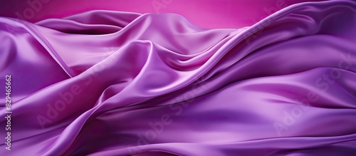 Obraz premium There is a copy space image of a crumpled pink satin fabric banner on a shiny purple background