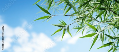 Fototapeta premium There is a copy space image of bamboo leaves surrounded by a serene blue sky and flowing clouds