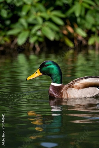 © haiqiang, Fototapeta premium there is a duck that is swimming in the water