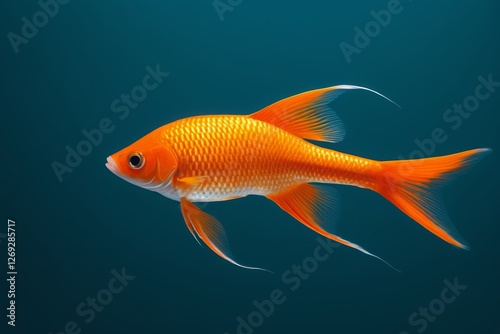 © haiqiang, Fototapeta premium there is a goldfish swimming in the water with a blue background