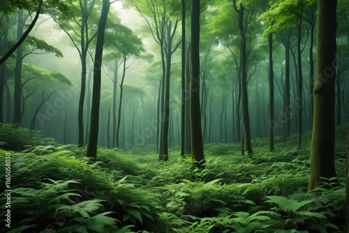 © haiqiang, Fototapeta premium there is a green forest with many trees and ferns