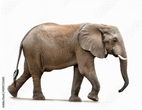© Enrique, Fototapeta premium there is a large elephant walking across a white background
