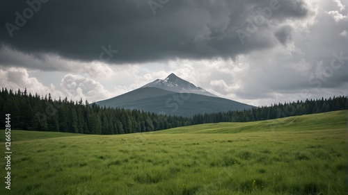 © haiqiang, Fototapeta premium there is a large field with a mountain in the background
