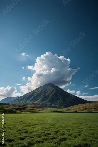 © haiqiang, Fototapeta premium there is a large mountain in the distance with a cloud in the sky