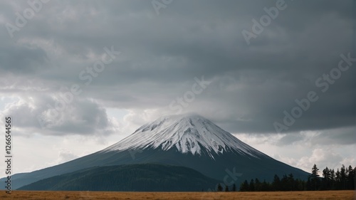 © haiqiang, Fototapeta premium there is a large mountain with a snow covered top in the distance