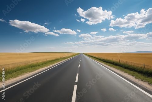 © haiqiang, Fototapeta premium there is a long empty road with a sky background