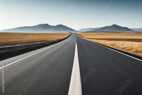 © haiqiang, Naklejka premium there is a long empty road with mountains in the distance