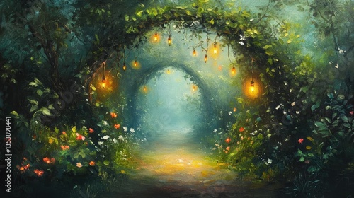 Naklejka premium there is a pathway with stairs and flowers in the middle, beautiful render of a fairytale, enchanted magical fantasy