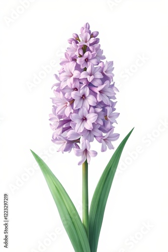 © haiqiang, Fototapeta premium there is a purple flower with green leaves on a white background