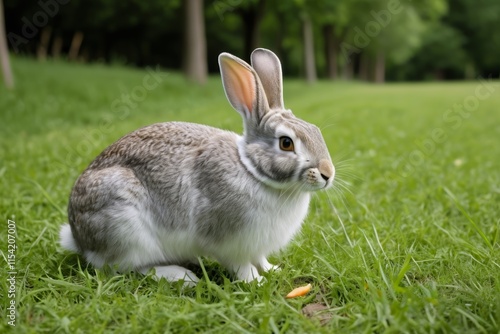 © haiqiang, Fototapeta premium there is a rabbit that is sitting in the grass eating
