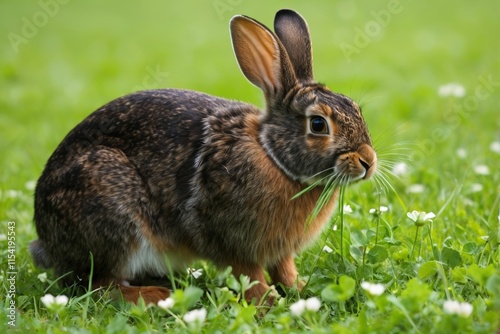 © haiqiang, Fototapeta premium there is a rabbit that is sitting in the grass eating grass