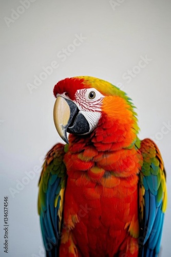 © haiqiang, Fototapeta premium there is a red chair sitting on a blue surface