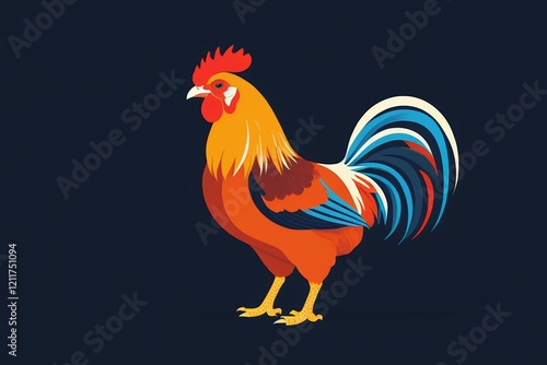 © haiqiang, Fototapeta premium there is a rooster standing on a black background with a red head
