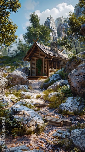 © Sukumar, Obraz premium There is a small cabin in the middle of a forest AI generated art