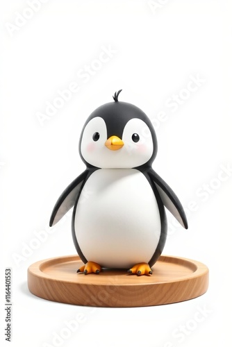 © haiqiang, Fototapeta premium there is a small penguin that is sitting on a wooden plate