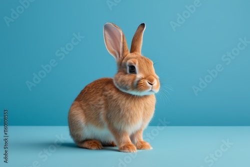 © haiqiang, Obraz premium there is a small rabbit sitting on a blue surface
