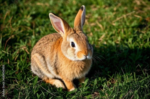© haiqiang, Fototapeta premium there is a small rabbit that is sitting in the grass