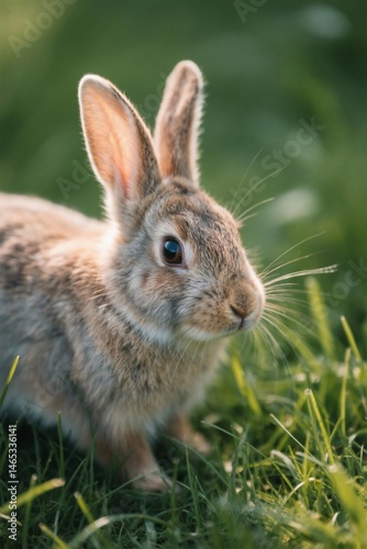 © haiqiang, Fototapeta premium there is a small rabbit that is sitting in the grass