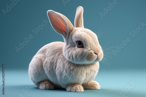 © haiqiang, Obraz premium there is a small rabbit that is sitting on a blue surface